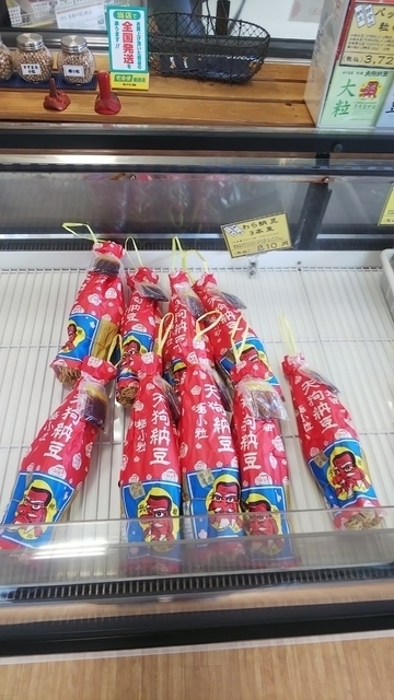 天狗の顔がトレードマークでインパクトがあります。自宅用に納豆を買いにきました。極小粒・大粒・黒豆納豆など種類豊富です。その時食べたい納豆が購入できます。オススメです!!