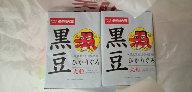 今回は、国産の黒大豆「ひかりぐろ」の黒豆納豆を購入しました。大粒で食べごたえがあります。たれ・マスタード・わさび付きで味の変化が楽しめます。