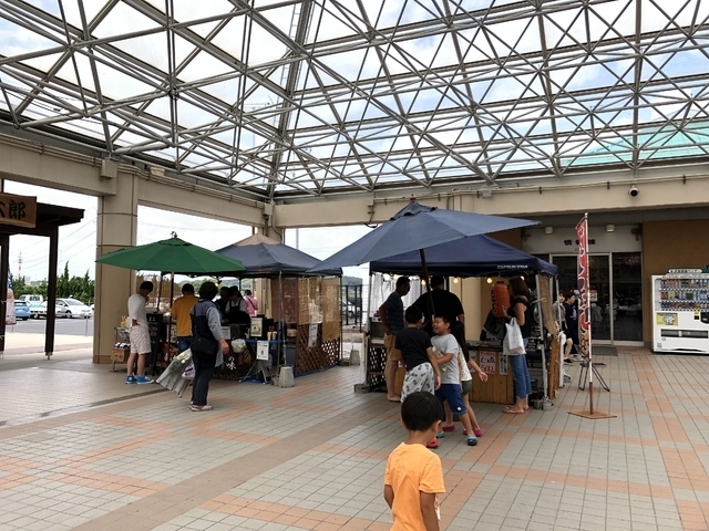 お盆真っ只中、キャンプした帰りに立ち寄りました。 お昼前頃の時間で駐車場はすぐ停められましたが、お土産屋さんや食堂など店内は大賑わい。 チャチャっとお土産の買い物を済ませて、屋外の出店で軽食を購入しました。 たこ焼き4個¥280、アイスコーヒー¥130、さつまスティック¥200、全て出来立てです。 野菜市場の中にも、お弁当やお惣菜、パンなど色々販売していました。 食堂は満席だったので入りませんでしたが、持ち込みもokだそうです。 高速ICからのアクセスも良く、駐車場も広いので立ち寄りやすい道の駅です。