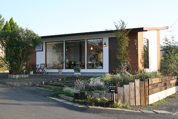 田園風景にマッチしたおしゃれな建物。ゆったりとお茶とケーキが楽しめます。