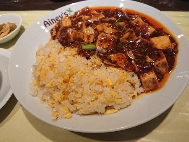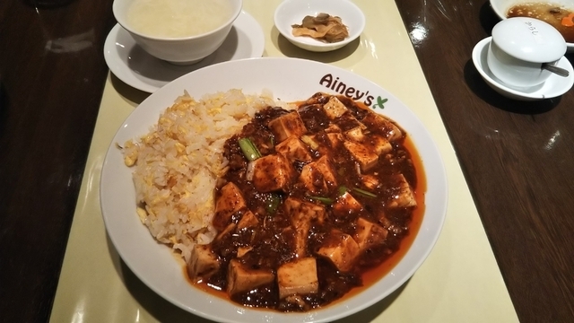 3年ぶりのアイニーズ。麻婆豆腐あんかけチャーハン、美味しかったです!麻婆豆腐は陳建一麻婆豆腐店の味を思い出させます!点心の焼売もふわっふわっで美味でした!