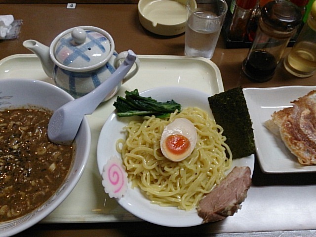 夜だけ営業のハードル高かった此方で夕食・ラー也♪ ラー派ですがつけでいってみやす( ̄ー ̄) 前情報通り圧倒的超ド味噌は強烈でした。仄かな胡麻の香り,レバー?!も溶かしてあったょぅな …濃厚なのでスープ割りへ~あっさり煮干し系投入(((^_^;) 次在ればラーか炒飯かなっm(__)m