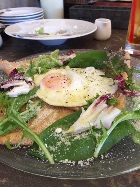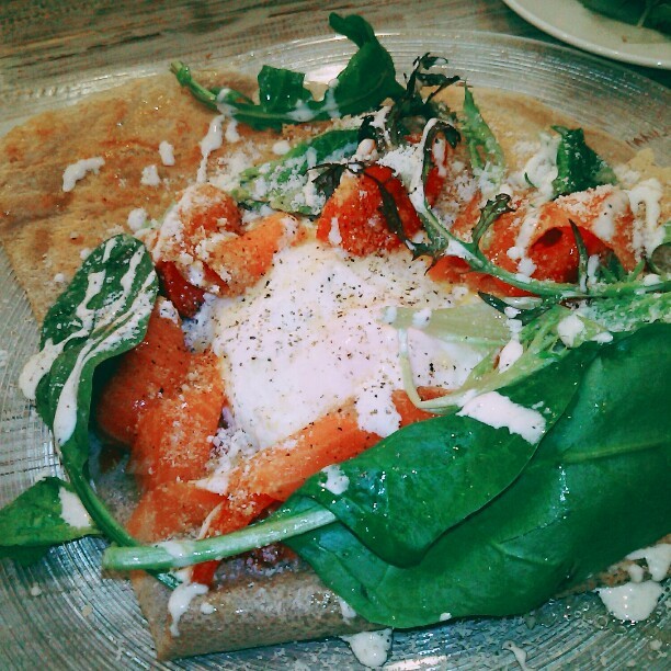 ランチに行きました!! 満席で少し待ちました。次から次へと車がはいってきてびっくりしました。 スモークサーモンとトマトのガレットを食べました♪