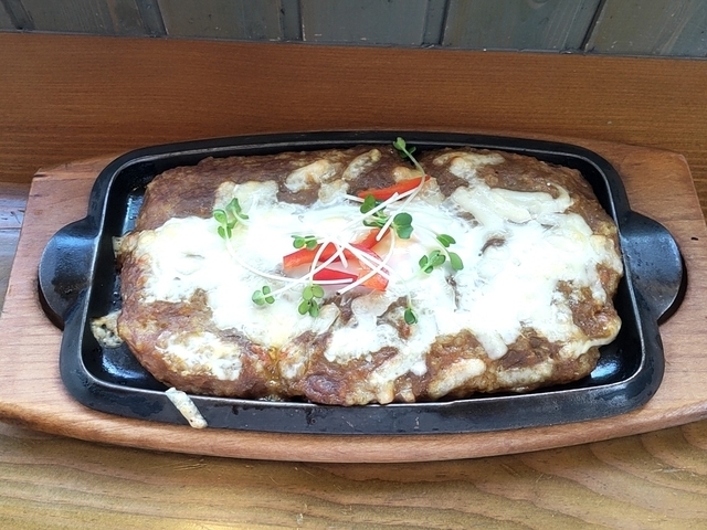 ◆焼きカレー 野菜とフルーツたっぷりの自家製カレー。 チーズと玉子がトッピング。 辛さは中辛程度で香ばしさがある。 ボリュームもちょうど良く、軽いお昼に最適。