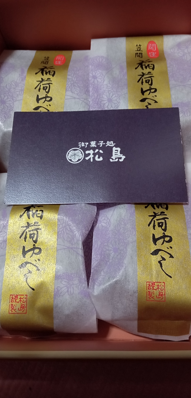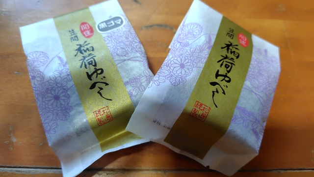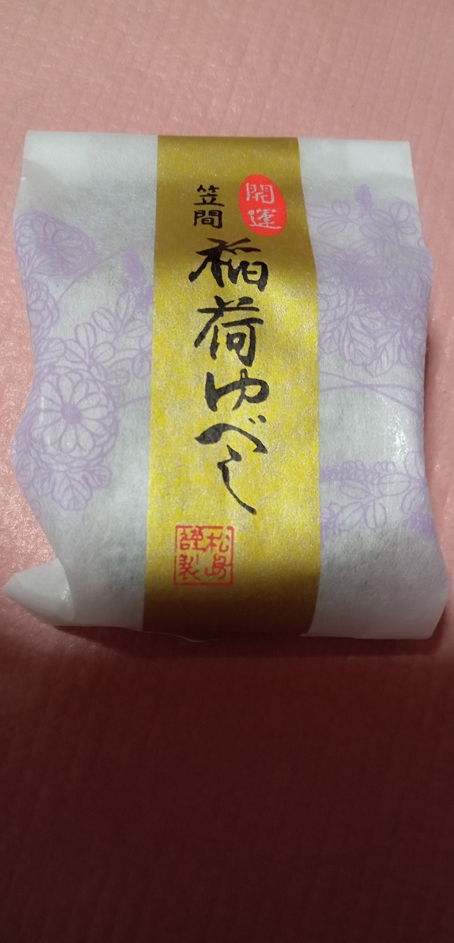 看板商品「開運笠間稲荷ゆべし」を頂きました。ここのゆべしは、上品な甘さのしょうゆ風味で、一口食べれば美味しさがわかります。オススメです!!