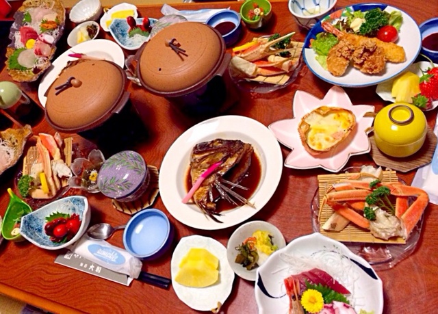 海が見える和洋室に泊まりました。とにかくお料理の量、質すごいです!こんな近隣にこんなに素敵な旅館があったとは・・・。お刺身もそうですが、カニ、ハマグリ、どれも美味しい・・・。一番の衝撃を受けたのが煮魚!最後の〆にご飯に乗せて食べたんですが、鳥肌が立つほどの美味さでした。また絶対利用します!
