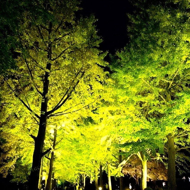 水戸市の歴史館の銀杏並木が、 今だけライトアップされています。 とてもきれいで、 今が見頃です。