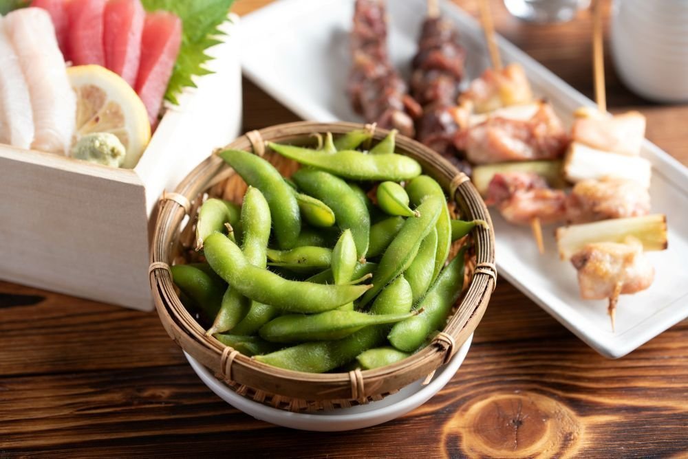 茹でたての塩味枝豆。ビールやハイボールとの相性抜群。