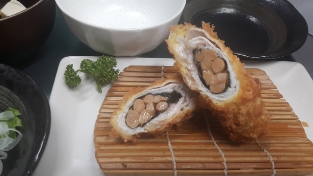 菊水食品創業七十周年記念して、とんかつ専門店 とん さんとコラボレーションでできた新メニューだそうです。更に納豆の日に先がけて、今日、七月一日から販売を開始したそうです。とにかく美味しいです。皆さんも食べると分かりますよ。癖になりそうです。