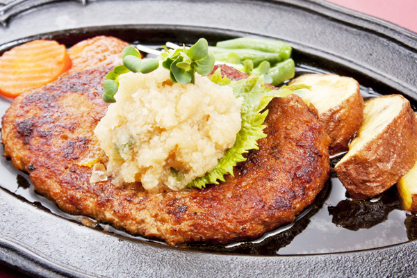 ハンバーグも人気!材料の玉ねぎは1時間以上しっかりと炒めて甘みを引き出しました。こだわりの逸品です!