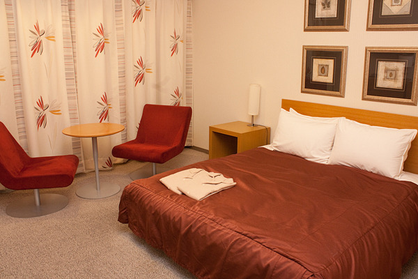 本当に駅から歩いてすぐでした!落ち着いた雰囲気だけど、堅苦しくないホテルという感じで施設内も綺麗でした。一階には食堂もあり、宿泊ではなくても入れます。外にもテーブルと椅子があります。 ガラス窓で、外の明るさの入る場所も多く。また、二階のホールも綺麗で広かったです。