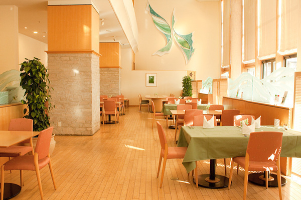 晴れた日には、木漏れ日が差し込む開放感溢れる吹き抜けのスペースにてお食事を楽しむことが出来ます。