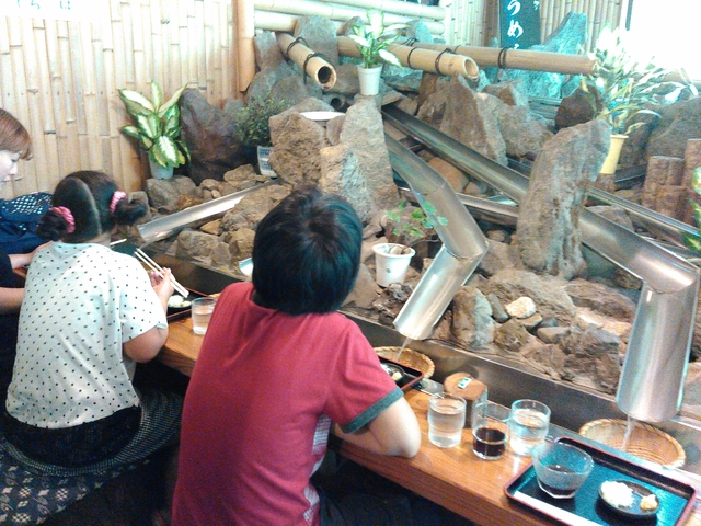 流しソーメンを食べに来ました。大人1000円で小学生750円です。ちょっとお高めですが美味しいです。美味しいのですが、やっぱり飽きてそんなに食べれません。ちなみに汁のお代わりは350円かかりますので、私はセルフの水の容器に汁を半分分けて薄まってきたら足すようにしています。。それぞれソーメンが流れてくるレーンが独立していて小さい子供でも楽しめますので一度体験してみては??お昼過ぎると混んでくるので11時ぐらいがベストかな。