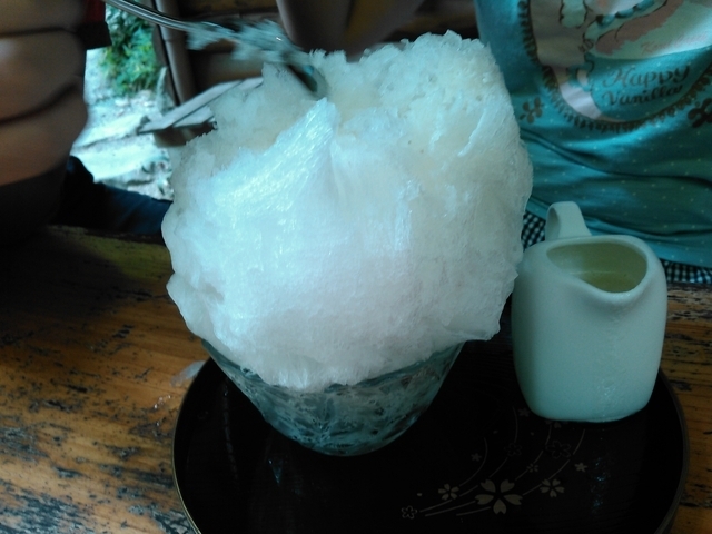 台風の影響からか滝もそば屋もガラガラでした。 水遊びをした後は天然氷で作ったかき氷を食べました。 ふわふわな食感で子供たち喜んで食べてました。 今回はメロンだったから次はイチゴにしてみよう