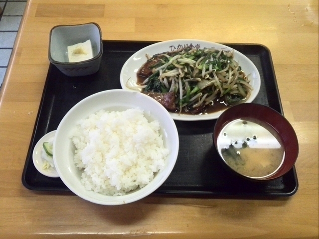 出先で昼食の時間を過ぎてしまい、14時過ぎギリギリで、ひかり食堂さんに入れました。レバニラ炒め定食を食べましたが、ソース味で野菜とレバーのバランスも良く、とても美味しく戴けました。ですが、ごはんの量にびっくり…。カツ丼の丼に目一杯です。完食しましたが、大盛の量が気になります。