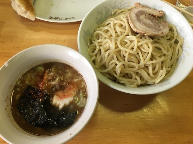 2月のとある昼に訪問、以前から気になっていた濃厚つけ麺大盛りを注文、麺は2玉分、サンマ煮干との表記があります。チャーシュー一枚は、クーポン利用です。スープは思っていたほどの濃厚さは無く、スープ割をしなくても飲める濃度に感じます。麺も弾力があり、中太麺かな、美味しいです。こちらはジャンボ餃子も美味しいですね。 大満足でいただきました。ご馳走様でした。