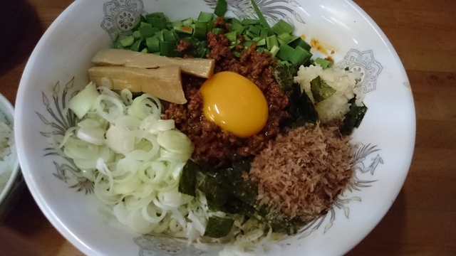 からつけ麺が食べたい!ってなって行ってきたのですが、もうないみたいですね? それともたまたまその日やってなかっただけかな? ので、以前食べて美味しかったまぜそばを注文! にんにくいりのおい飯つきで!! 満腹です(^ω^)