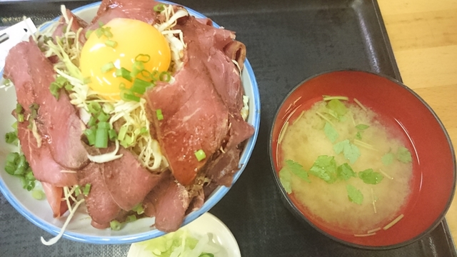 ローストビーフ丼がメニューに加わったときいて、食べに行きました!! 甘いタレと卵の黄身が良いカンジに絡んで美味しかったです。