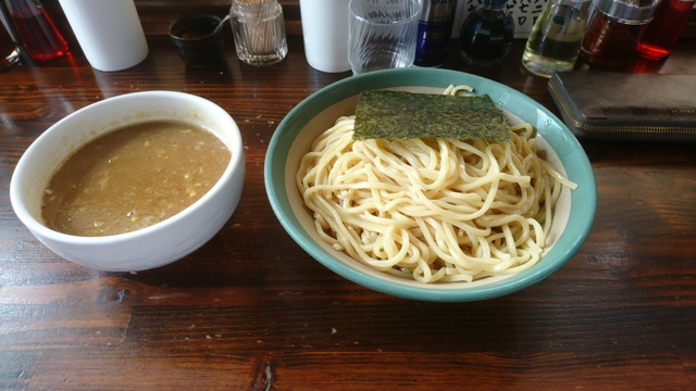 2021.7.6(火)11:45訪問。 先客二組、後客四組。 本日のランチは、茨城県庁東にあるこちらで。 初訪問。 注文制です。 つけめん870円に中盛100円をオーダー。 待つこと約10分、着丼。 まずは麺のみをひとすすり。 しっかりとしたコシと、小麦の風味を感じられる。 スープは節が強いザラザラ系で、角切りチャーシューとメンマが入ってます。 このつけ汁、麺によく絡み、旨い。 最後に割りスープをいただき、完飲。 ごちそうさまでした。