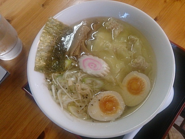 先週・金曜日約1年ぶりに来訪した報告!! 選べる塩スープで注文\(__) 穏やかなる塩梅に旨みあるワンタンが鎮座し酷を加えています。和風よりの匙加減故に毎日でも食せる仕上がり。