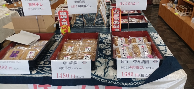 以前から何度となく、前をと思っていました。今回は、初めてですが、茨城名物干し芋があることを知り、買いに来ました。紬、地酒とかあり、その中に目的の干し芋がありました。おすすめ品の紅はるか切り落としが、安く売っていたので、買って来ました。帰ってから食べましたが、やわらかく、とてもうまかったです。