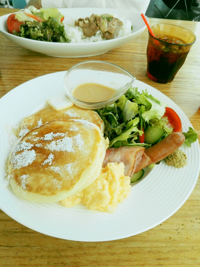 ふわっともちっとしたパンケーキ、おやつじゃなくて食事になる事がびっくりでした。 ランチで何度か食べましたが作る人によって食感が違うような? 一人でも普通に入れます