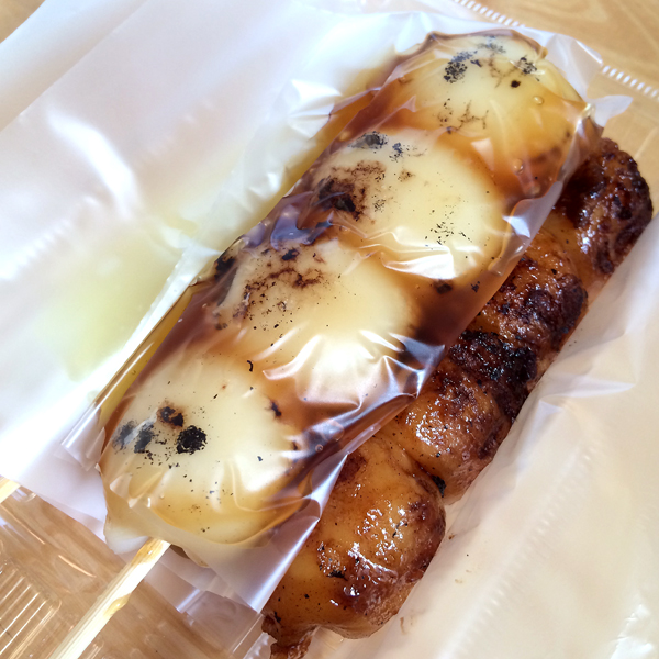 2歳の娘は、みたらし団子2本をペロリ。 しいたけのり巻きをモーリモリ。 団子も美味しいけれど、わたしはのり巻きと塩エリンギ、メンマが大好き! 大福は皮がちょっと厚めなので、好みが別れるかも。