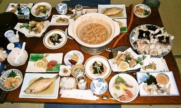 ◆基本宿泊プラン<1泊2食付> ・大人(中学生以上)9,000円~ ・小人6,600円 ・幼児4,000円(ふとん有り)/2,000円(ふとん無し) ☆オプションとの組合せに関しまして詳しくはお問合せ下さい 【本場磯料理】 太平洋の新鮮な海の幸! 漁港平潟ならではの、水揚げされたばかりの新鮮な海の幸を味わえます。 あんこう鍋をはじめ各種あんこう料理、舟盛り、あわび、さざえ、つぶ貝、うに焼、かに、岩がき等別注にて承っております。忘年会等の各種ご宴会にもご利用下さい。 ■キャンセル規定 ※一人当たりの料金 14日前から:宿泊料金の30% 前日:宿泊料金の50% 当日・不泊:宿泊料金の100%