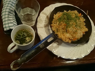 かねて食べたかったヤンキーピラフ。鉄板に乗って出されます。サラダ、スープ、ゼリー、コーヒー付き。ピラフの量はそれほど多い感じはしなかった。味はまずまずですかね。