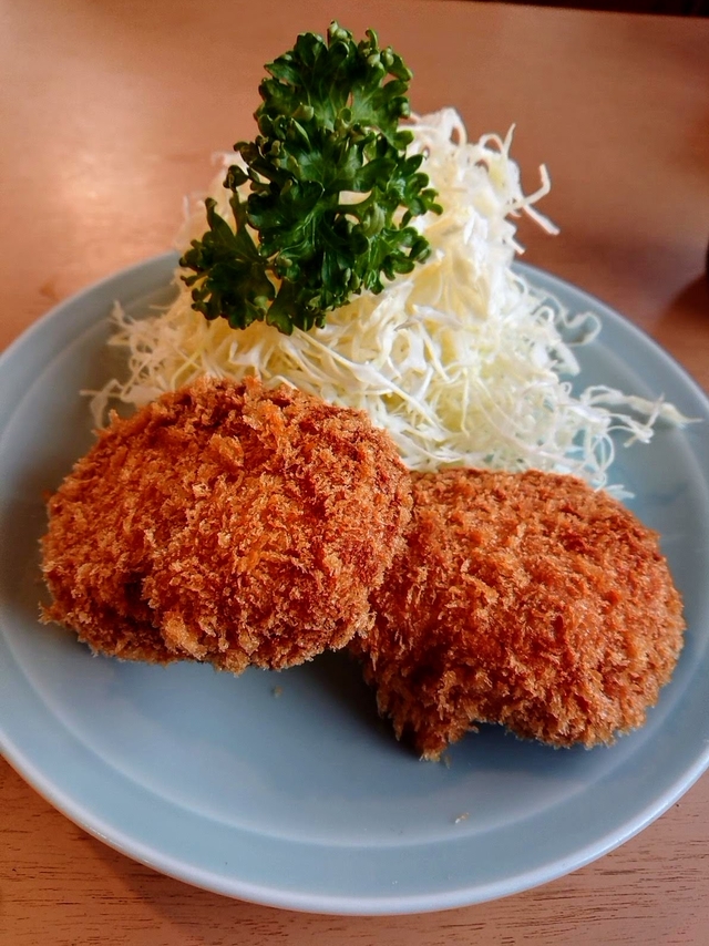 有名な竜ヶ崎コロッケを食べてみたかったのて、行ってみました。定食にしゃきしゃきキャベツがついていて、とっても美味しいランチになりました。