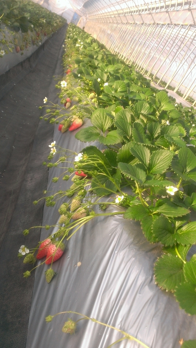高床栽培と低床栽培の両方で栽培しているので、立ったままでも、座っても、もぎ取れます。