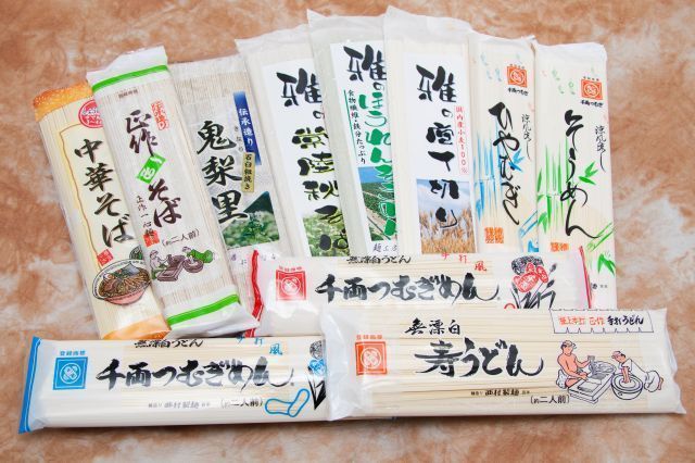 うどん、そば、ひやむぎ、そうめん、中華そばなど、さまざまな商品を豊富に取りそろえています。