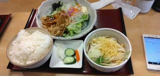 2023.3.25(土)13:10訪問。 満席、待ち三組、後客多数。 本日のランチはこちらで。 あいにくの雨ですが、近くで桃まつりというものをやっているようで、道が混んでいます。 ランチメニューの中からランチ生姜焼き定食980円をオーダー。 うどん・ごはん大盛り無料らしく、ご飯を大盛りに。 待つこと約15分、着。 うどんはわさびがそえてあり、それを溶かして食べる。 コシがしっかりしたうどんで、旨い。 生姜焼きは、豚バラ肉。 甘塩っぱい味付けで、ご飯がすすむ。 ごちそうさまでした。
