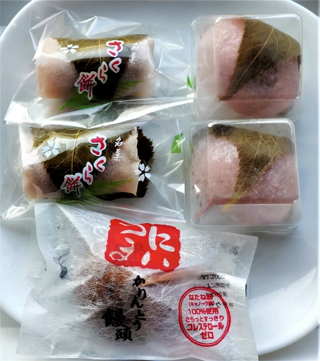 【桜餅&道明寺】 この時期になると、和菓子店には桜餅が並びます。 「にいつま」でも桜餅と道明寺が店頭にあったので、購入しました。 好みは分かれると思いますが、個人的には、関西風桜餅の道明寺が、おいしかったです。 ・桜餅(190円) ・道明寺(250円) どちらも中の餡はこしあんです。