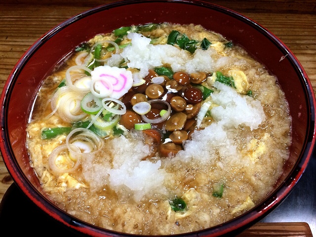 高校時代、開店と同時に授業を抜け出して、大肉たぬきとじウルトラとか弁当の前に食べてました。ひたすらハマってそればかり食べていたのですが、ふとしたことで30年ぶりに訪問。ここはあえてメニューをじっくり拝見し、秋山スペシャルというなんとも魅惑のネーミングがつけられた商品にくぎ付け。ニラ、なめこ、たまご、大根おろし、揚げ玉の組み合わせは、ネーミングからして過激なものかと思っていましたが非常に優しくて美味。最後に来たのは卒業式の日で、もうこれでしばらく来れないな〜なんて思った事を思い出しながら、懐かしいひと時を味合わせていただきました。また少し通おうと思います。