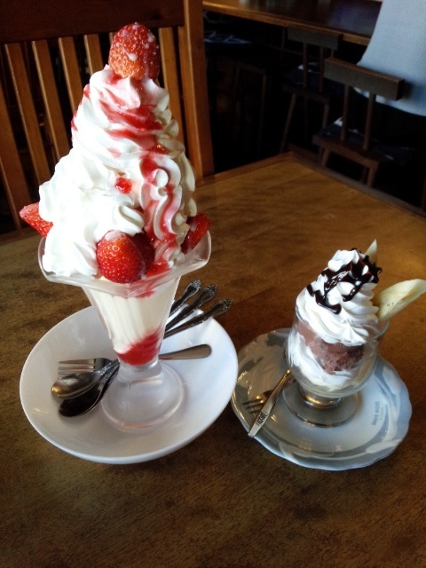 雰囲気は落ち着いた感じで木製のインテリアが素敵です。パスタは昔ながらの洋食屋さんの濃厚なソースで食べがいアリ!さらにデザートにパフェとミニパフェボリューム満点で大満足です。