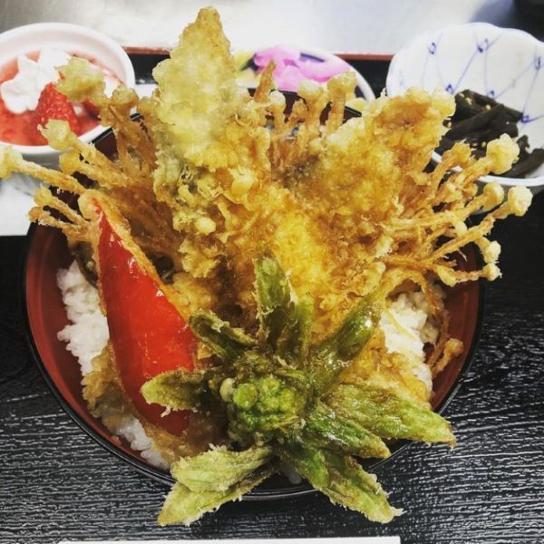 メソ天丼セット お新香・小鉢・茶碗蒸し・お椀・デザート付き