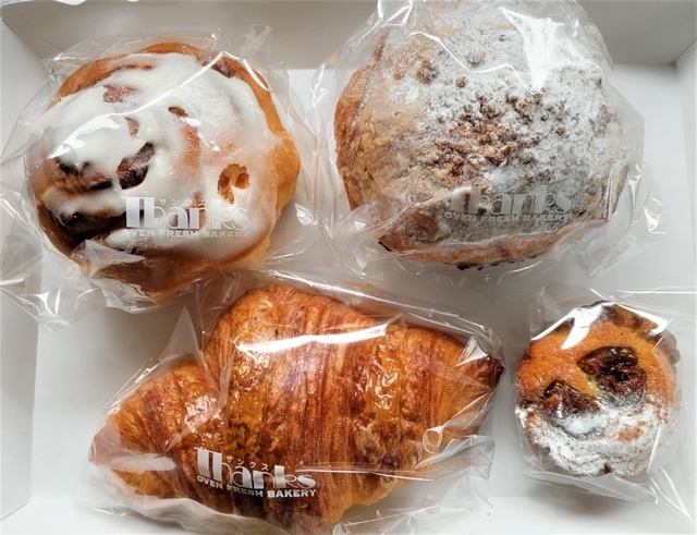 良心的な価格のパンがたくさん並ぶベーカリー。 今回購入したのは3種類のパンとイチジクのタルト(150円)。 ・クロワッサン(150円) ・シナモンナッツロール(190円) ・アーモンドクリームのデニッシュ(220円) どのパンもおいしくいただきました。