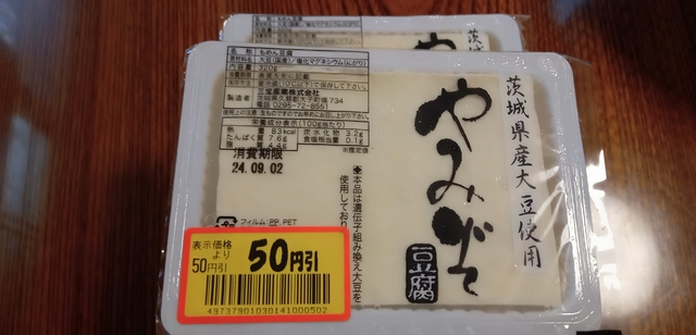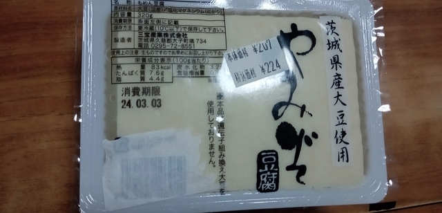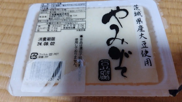 茨城県産大豆使用の「やみぞ豆腐」を購入しました。県内産大豆の豆腐はとても嬉しいです。大豆の味にコクがあり、シンプルに冷や奴で食べました。オススメのお豆腐です!!
