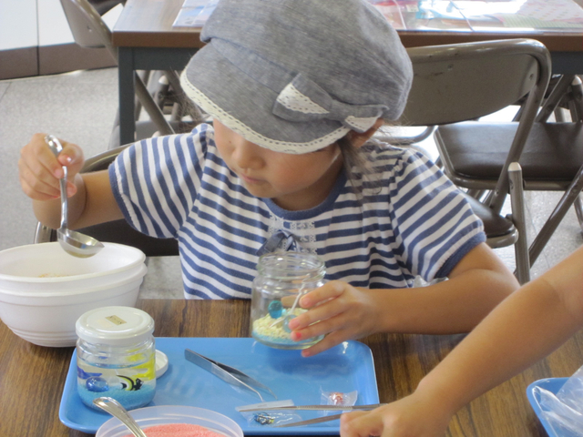 小さな子どもでも出来るキャンドル製作をしました。幼稚園の子どもが真剣に作っている姿が見られて、とても良い思い出になりました。 そして、高台にあるので眺めが素晴らしい!北茨城の町の先に広がる太平洋まで一望できます。 館内にはガラスの芸術作品も多数展示してあります。超絶技巧です!