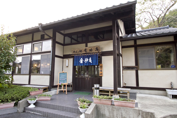 西金砂湯けむりの郷「金砂の湯」のとなりにある食事処『金砂庵』では、地元特産のそば料理の数々が味わえます。オープン以来、挽きたて・打ちたて・ゆでたての「3たて」を貫き、店内から見える電動の石臼で毎日そばを挽きます。水は、肌に良いと言われる「西金砂天然水」を使用し、野菜も地元産のものをふんだんに使用しております。 金砂郷特産「常陸秋そば」をぜひご賞味ください。