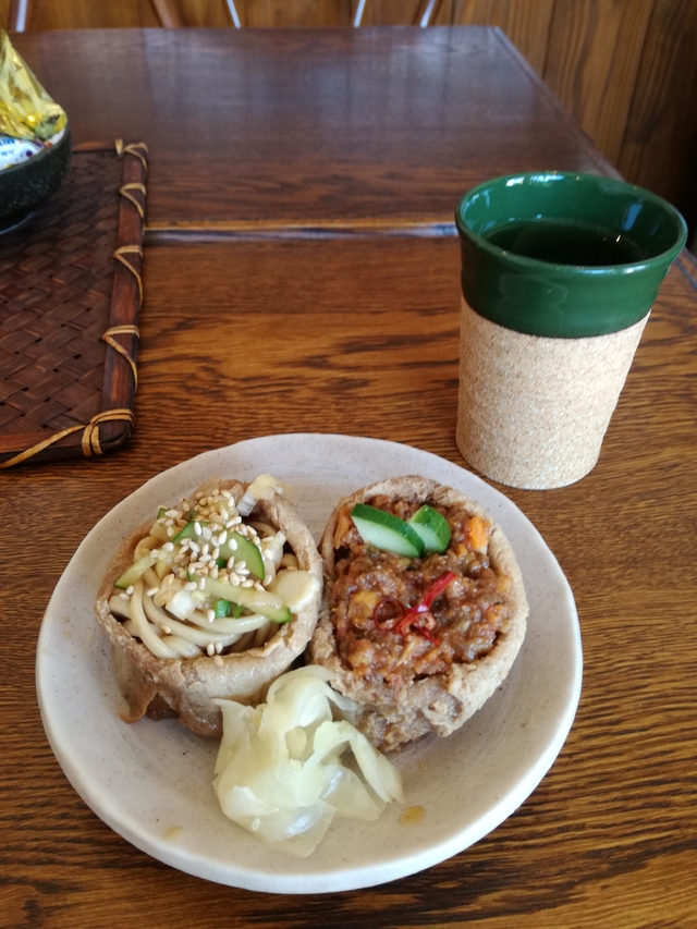 開店前に到着していましたがお店の方が気付かれ早めに入店させていただきました。初めてなのでお試しでそばと肉味噌のいなりをイートイン、お茶のサービスをいただきながらあっという間に食べてしまいました。旨いです、特にそばのいなりは気に入りました。値段も安く近いうちに再訪させてもらいます。