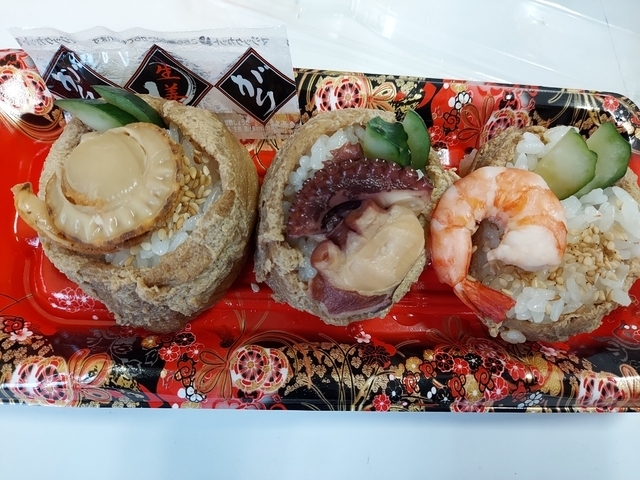 お稲荷さんの中にいろいろな具材が入っているというのが斬新でとっても気に入りました。タコが入ってるやつが一番のお気に入りです。あと、季節によっていろいろネタが変わるのも面白いですよね♪