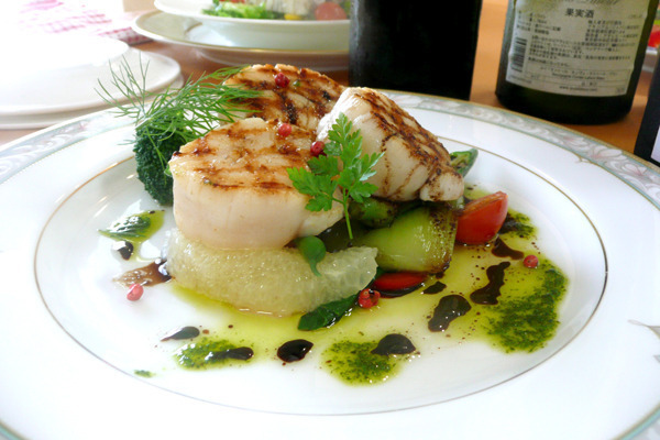 三陸産活大粒ホタテをグリルし、旬の野菜と彩り良く盛り付け、バルサミコ酢のソースでお楽しみ下さい。