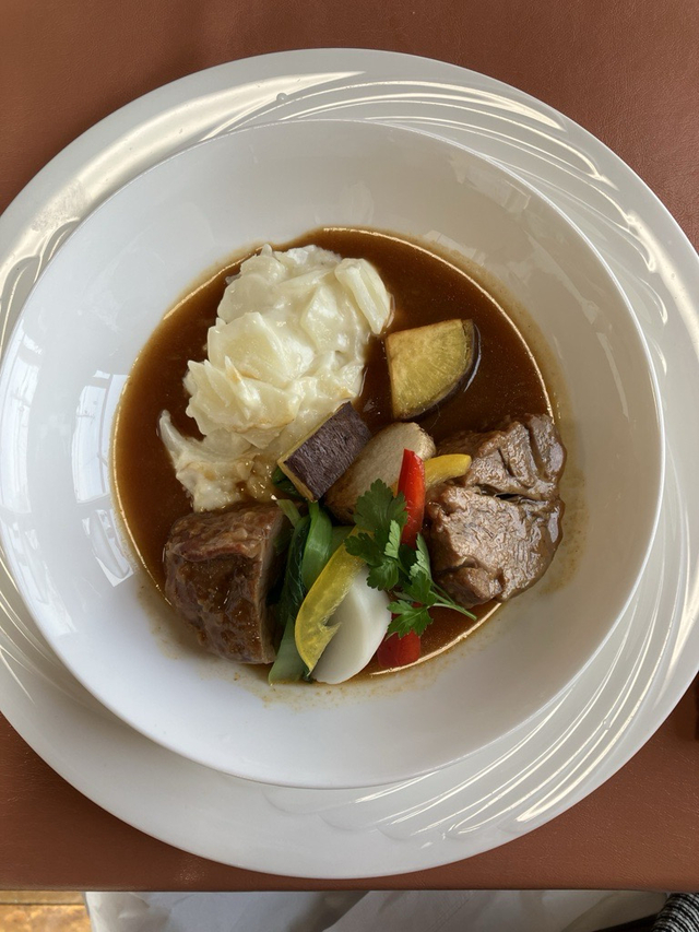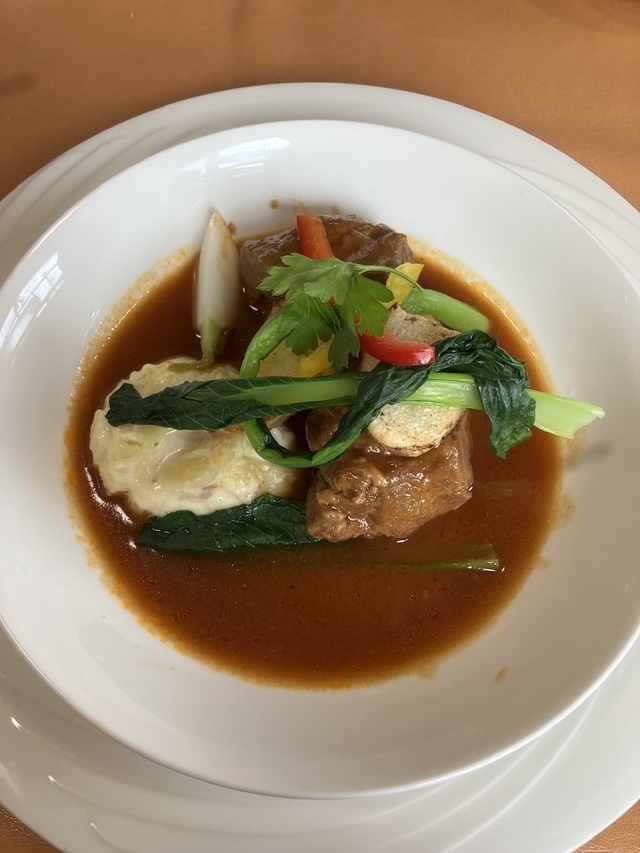 つくばにある、本格フレンチ料理のお店です。夫と結婚前のデートでの食事や、職場の食事会でよく来ました。今回は、久し振りに職場の食事会でランチに来ました。メインは、仔羊上肩ロース(ナヴァラン風煮込み)、デザートは洋梨タルトをオーダーしました。前菜やパン、飲み物も付いて来ます。食事が美味しのは勿論、ボリュームもあり、かなりお腹いっぱいになりますよ♪