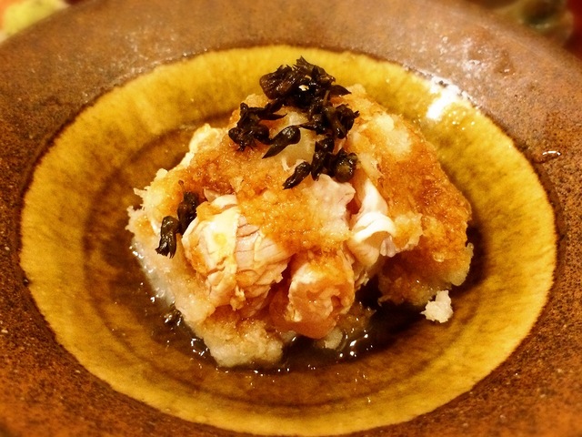 ランチ2回に続き遂に夜訪問。お客様は不在。場所柄知っている方じゃないと入らないでしょうね~。 まずは鳥辛味大根とわさび芋、鳥天ぷらサラダをオーダー。いずれも他にない個性的な味わいで酒飲みにはぴったり。 白ワインも2,000円ちょいでかなり美味しく、自家製ぬか漬けをつまみながらほろ酔い。 締めには夜限定という温製トマトチーズだれせいろを、おすすめの田舎蕎麦バージョンでいただきました。 いずれも満足度高く、何より気になる個性的なメニューがまだまだあるので、また通ってしまいそうです。 クチコミ連投していますが、お店の回し者ではありません(笑)