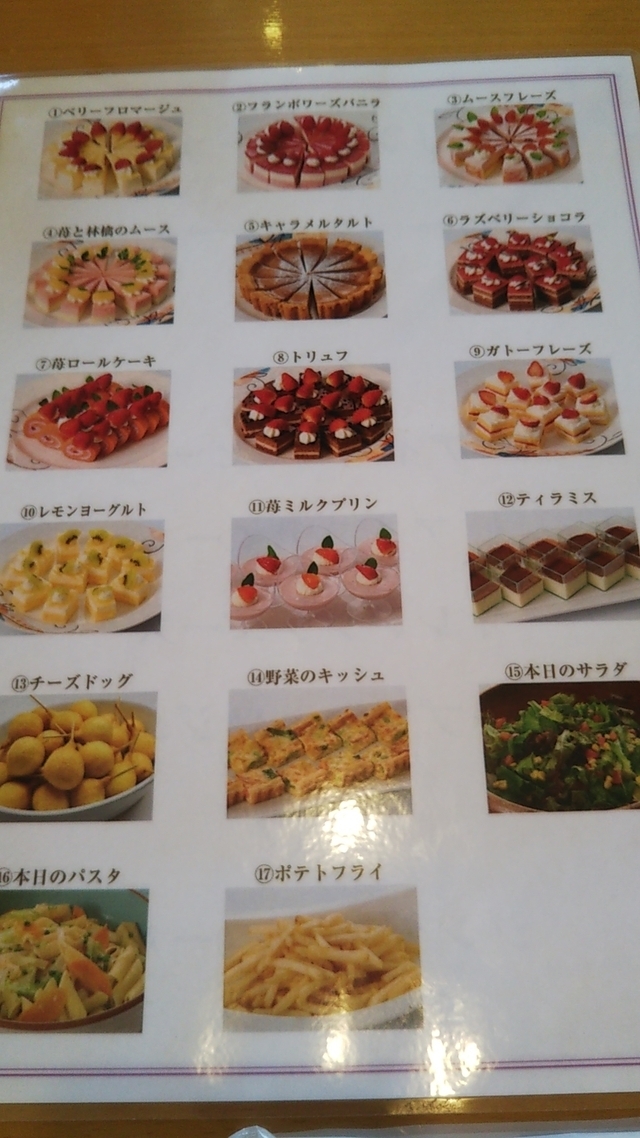 久しぶりにスイーツバイキングに行きました。平日なのに満席でした。数日前に予約しといて良かったです。スイーツは12種類、そのほかサラダ、パスタ、キッシュ、フライドポテト、飲み物の種類もたくさんあってそれぞれおいしかったです。