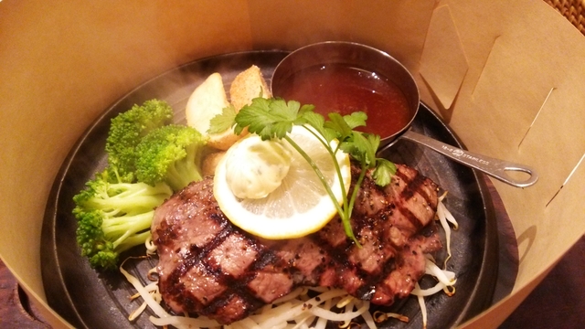 ビストロ エンドウさんに伺いました。 土曜日のお昼に堪能してきました。 ランプ肉ですが、思ったより柔らかくて、美味しかったです。サラダバーも生産者の方々の紹介など表示されてました。お総菜、スープ、サラダバー、パン、ご飯、カレーと食べ放題なうえ、ランプ肉のステーキが着いて、とってもお得でした。 プラス料金でドリンクバーも付けられました。 食べ終わった後は、アパホテルさんの足湯を楽しめます。