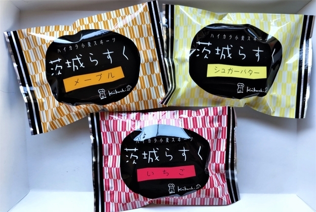 【茨城らすく】 茨城県産の小麦「ゆめかおり」を使用したラスクが5種類販売されています。 シュガーバター、メープル、ココナッツミルク、バジルトマト、いちごです。 今回は、シュガーバター(100円)、メープル(110円)、いちご(140円)の3種類を購入しました。 1袋2枚入りです。サクサクでおいしかったです。ちょっとしたお土産におすすめです。
