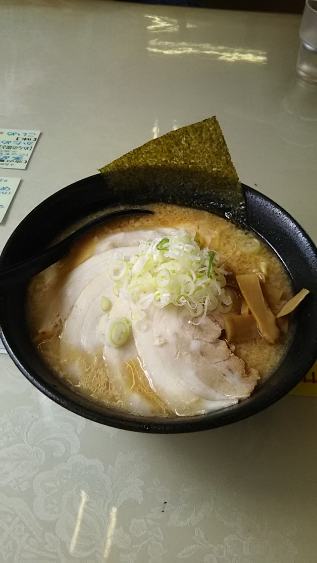 初夏限定のはまぐり出汁ラーメンとサービスのとんとろ餃子(5個)を食しました。麺かため、味・油は普通と指定。ハマグリの出汁にホタテの旨みを加えたというスープは半ば白濁で、貝の美味しさが強く感じられる塩味。ただ最初、麺と一緒に食べている間はよかったが、最後に残ったスープを飲むと少し塩辛さが強く、もっと淡いのがいいと思いました。具はハマグリ1個、鶏肉団子2個、水菜、ワカメ・トサカノリ、メンマ。麺量に比して価格やや高めか。とんとろ餃子はとりたてて言うほどもない普通の餃子でした。餃子無料券/500円ラーメン券をいただきました。